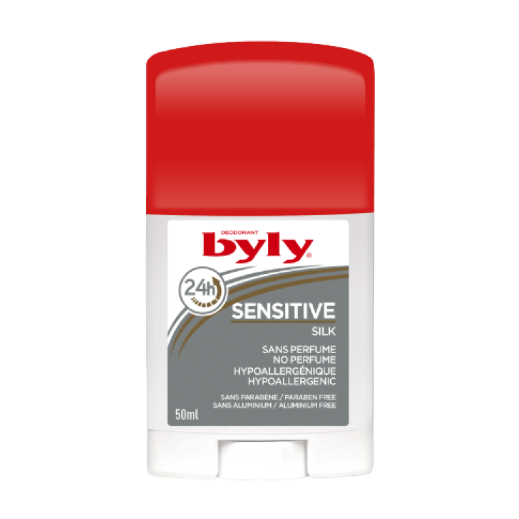 Deodorant stick with silk proteins, no perfume and aluminium free gentle and effective for sensitive skins.