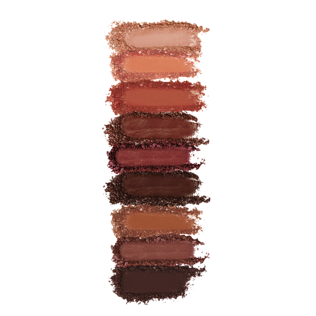Palette with 9 multi-finish eyeshadows, matte, pearly and metallic, in a powder compact.