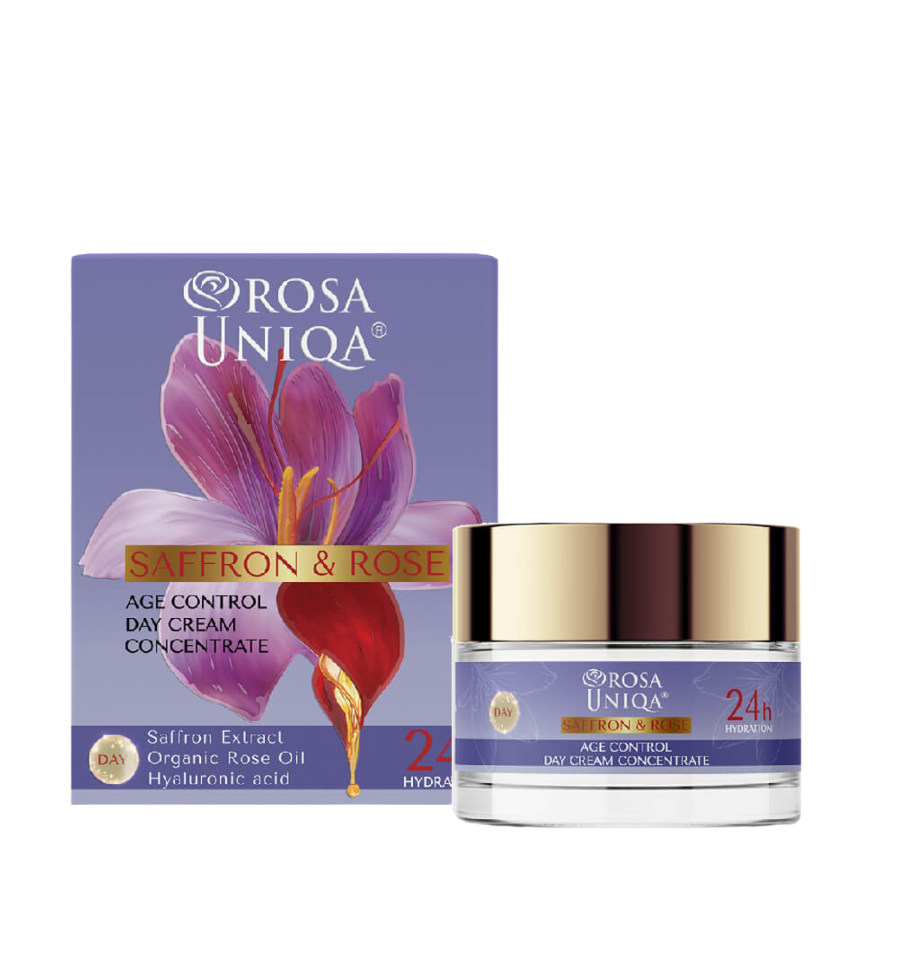 Day cream concentrate Rose & Saffron Arsy Cosmetics is an innovative daily anti-aging care that keeps the youth of the skin. Contains a lifting complex and natural active ingredients that regenerate the cells. Stimulates collagen synthesis and tightens skin. Fights efficiently with aging and visibly rejuvenates the skin. Suitable for use for an age range of thirty to fifty years for each skin type. The saffron extract activates cells that produce collagen and elastin, moisturizes the skin and has brightening properties. Bio rose oil nourishes, restores and improves the elasticity of the skin of the face. Coenzyme Q10 stimulates cell regeneration and slows aging processes.